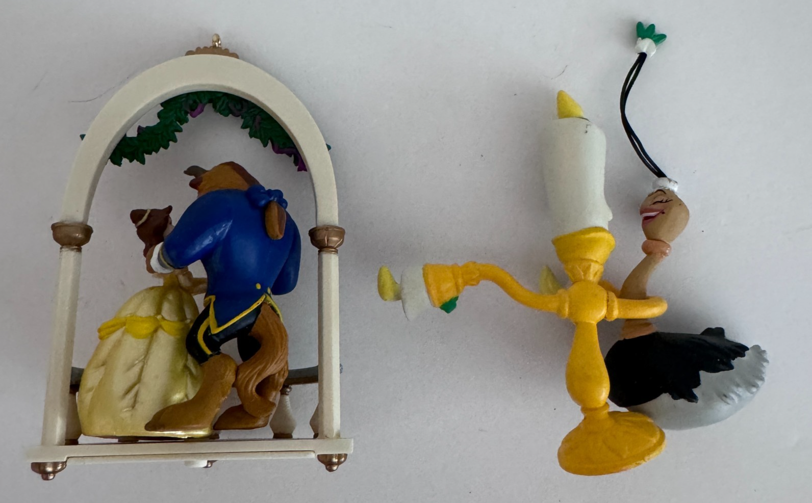 - Lot 2 Enesco Disney Beauty and the Beast & Lumiere Christmas Ornaments Vintage