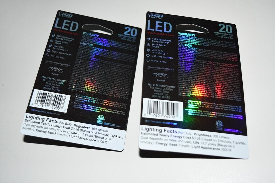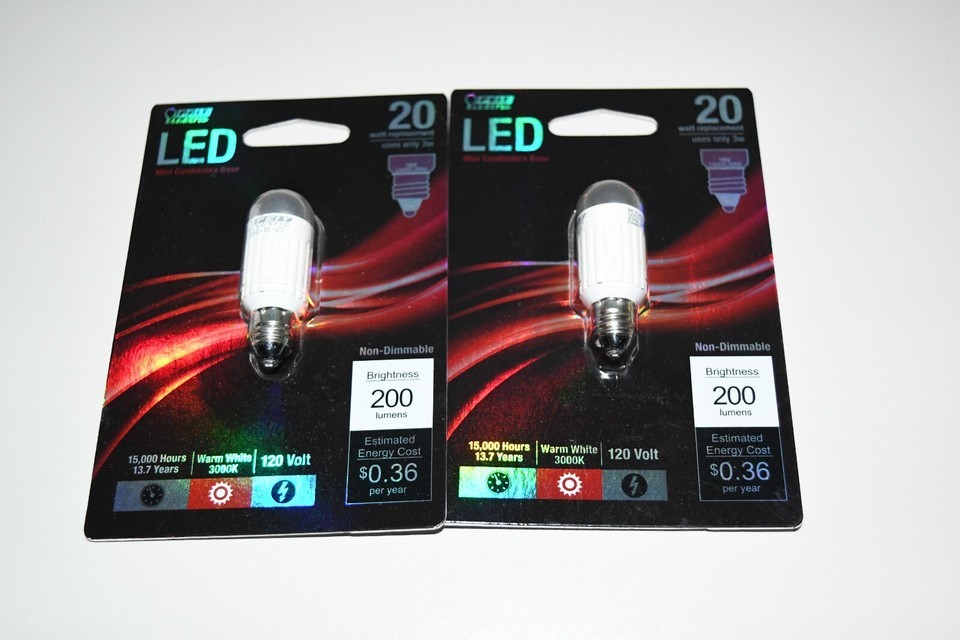 - Lot 2 Feit Electric Led Bulb Sw E11 3w 3k 20 W Equivalent Lamp Base New 1D 1/23