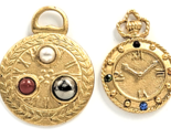 - Lot 2 Gold Tone Clock Face Pins Pocket Watch Design Faux Gem Rhinestone Accents