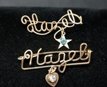 Lot 2 - HAZEL - 10kt GF Name Brooch Dangling Star Heart Rhinestone 1940's-50's. Condition is Pre-owned - Good. Shipped with USPS Ground Advantage.