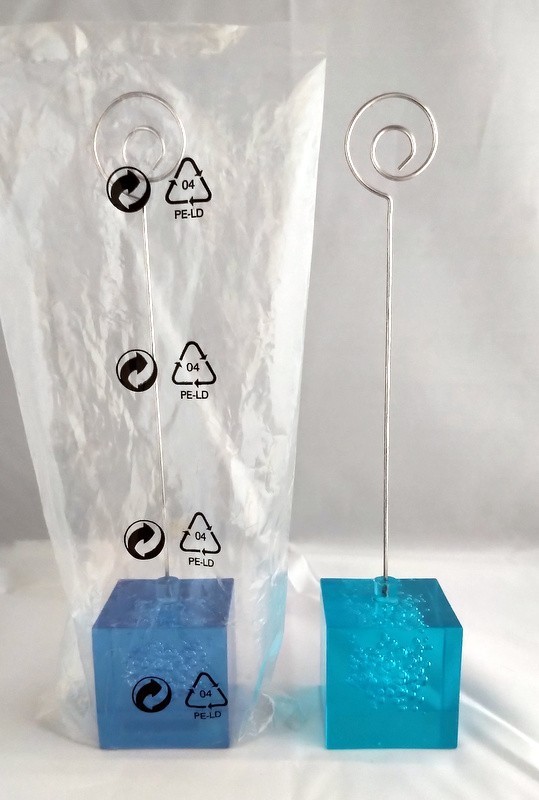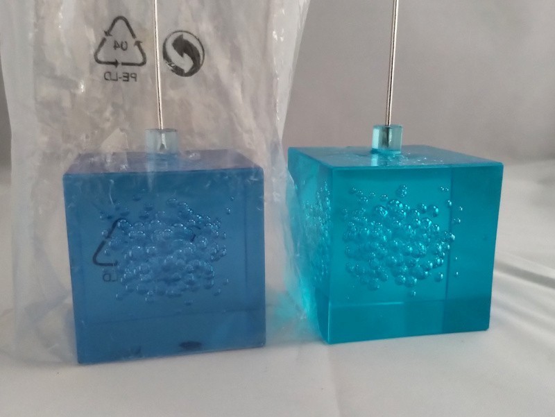 - Lot (2) IKEA Turquoise Blue Bubbled Lucite Block Cube Photo/Card Holders (9" H)