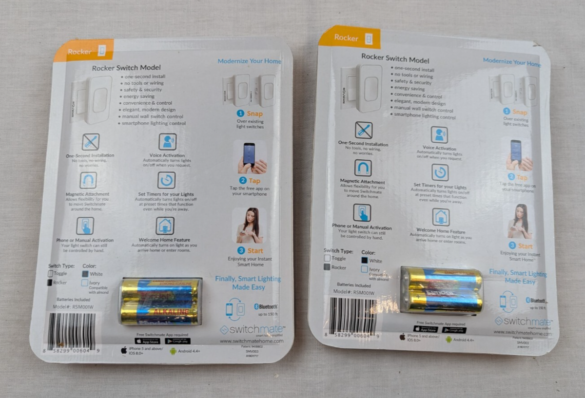 - Lot 2 Switchmate RSM001W Smart Lighting Control Rocker w/Batteries White Sealed