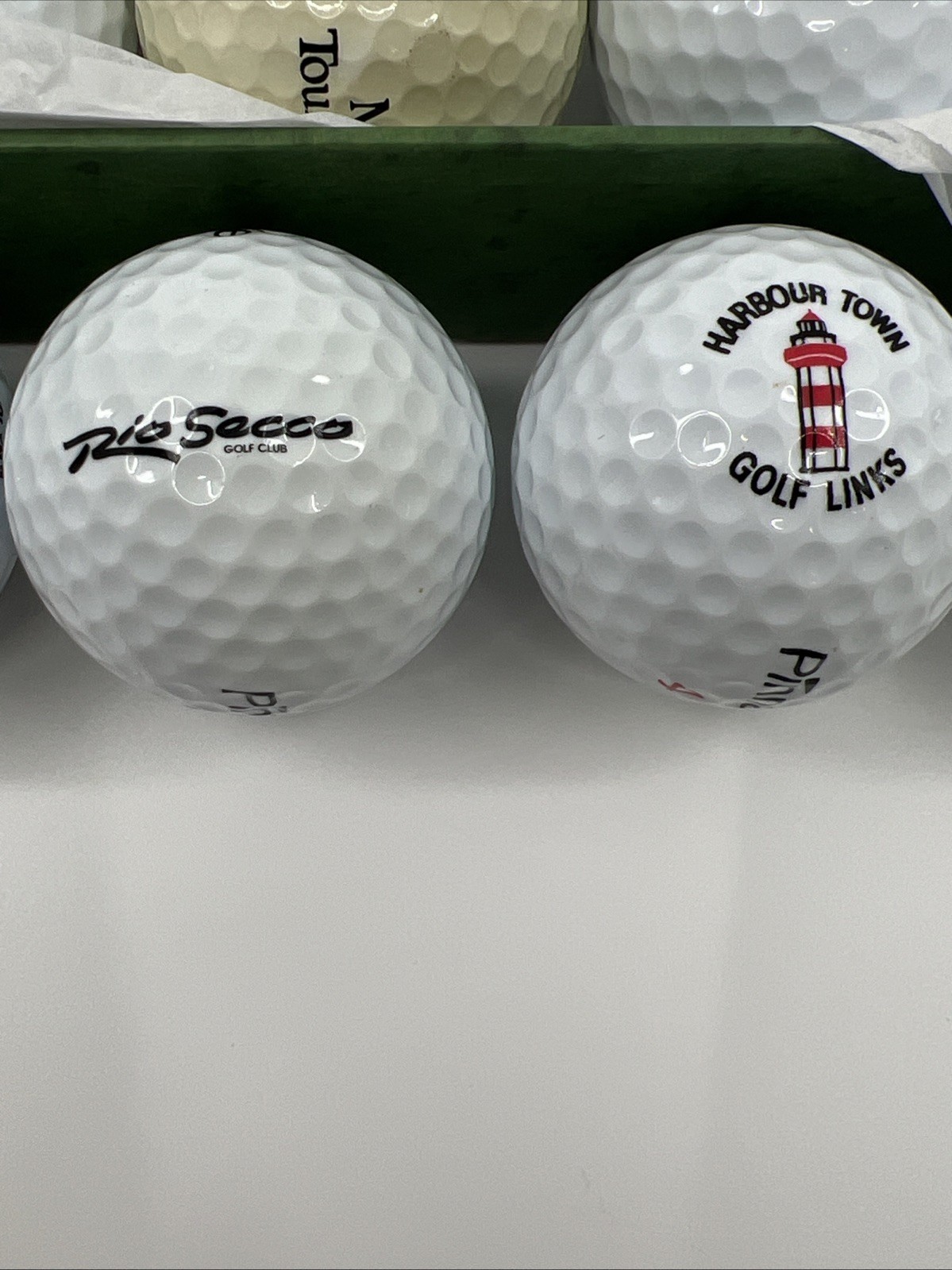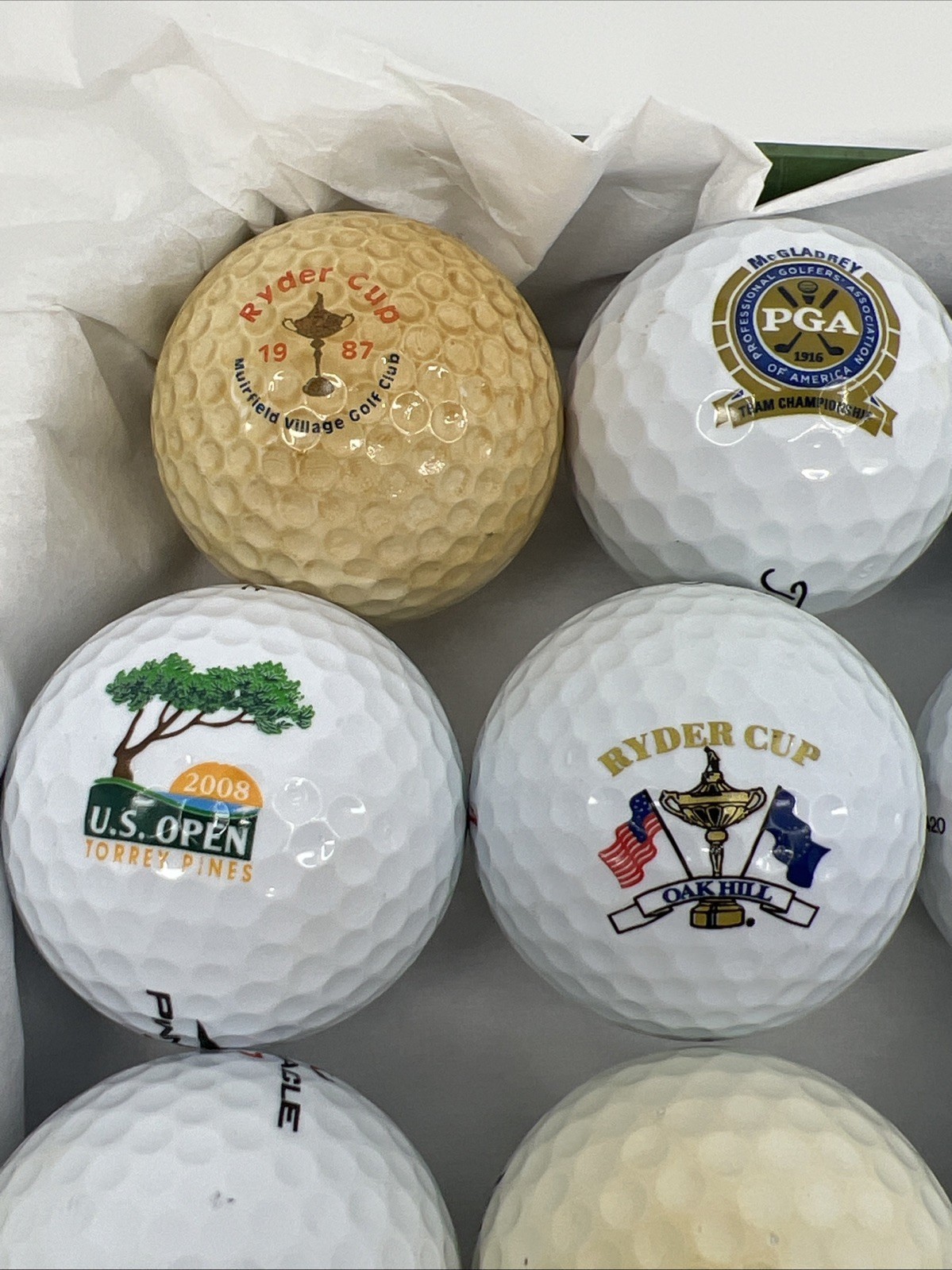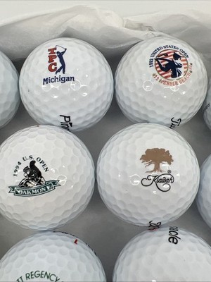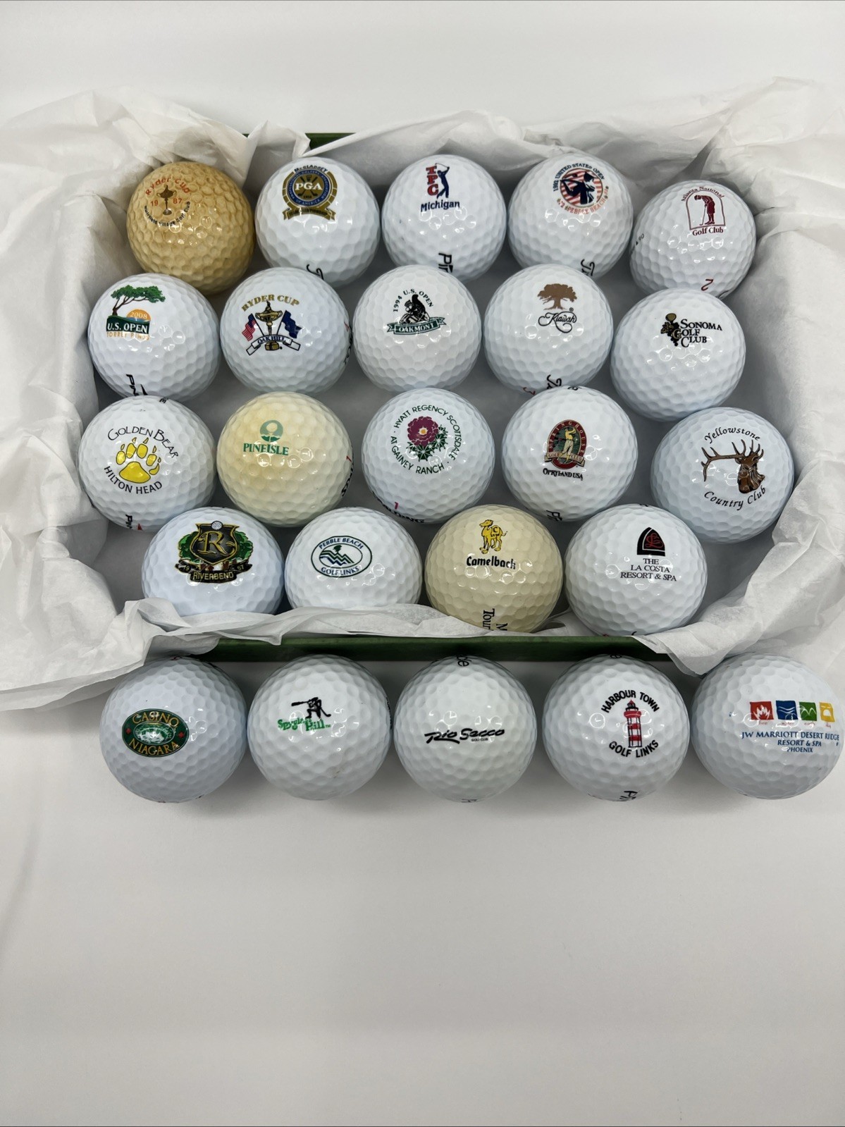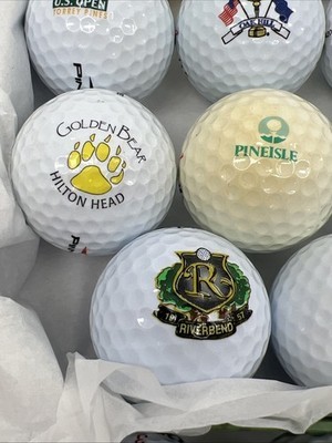 The lot includes golf balls from: Pebble Beach Golf Links, Sonoma Golf Club, Camelback, Yellowstone Country Club, TPC Michigan , Opryland Golf Club, 1992 US Open 72 Pebble Beach 82, PGA McGladrey Team Championship, 1987 Ryder Cup (Muirfield Village Golf Club), RiverBend, La Costa Resort, Golden Bear Hilton Head, Desert Ridge Resort and Spa, Spyglass Hill, Harbour Town Golf Links, Invitational 2000 Leonard Tate Atlanta National Golf Club, Ryder Cup Oak Hill, Pineisle, 2008 U.S. Open Torrey Pines, 1994 U. S. Open Oakmont, Rio Secco Golf Club, Hyatt Regency Scottsdale at Gainey Ranch, Casino, Niagara and Kiawah.