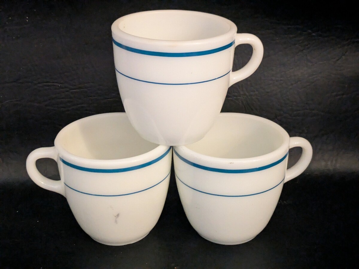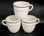 Lot De 3 PYREX Cafétéria Mess Hall 723 Lait Verre Teal Bleu Rayure Bande Mugs