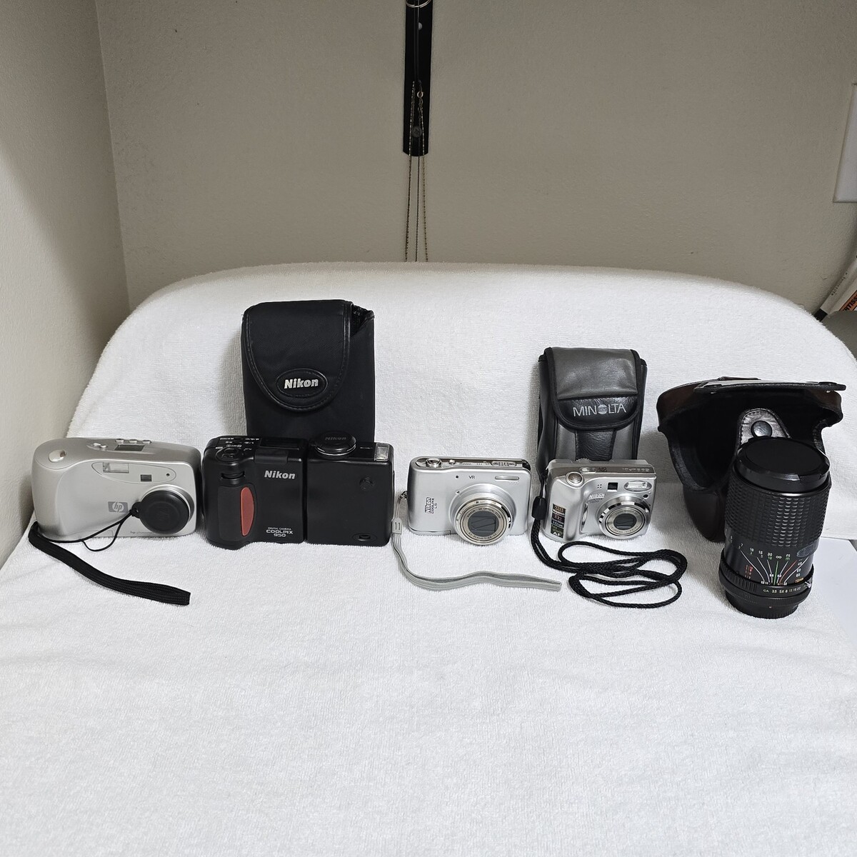 - Lot Digital Camera Bundle For Parts or Repair Nikon HP Five Star Lens