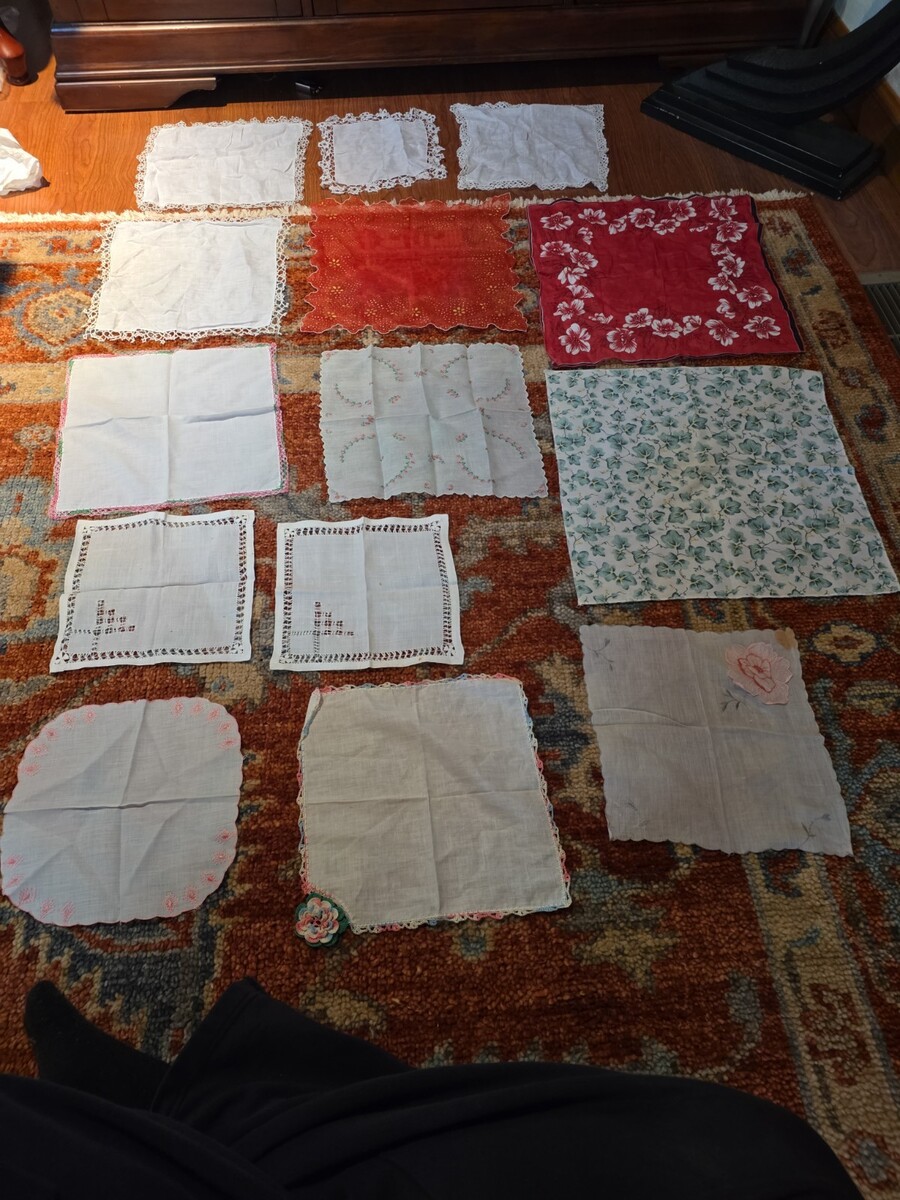 - Lot Of 14 Vintage Hanky Mixed Lace Crochet Embroidered & Print Handkerchiefs