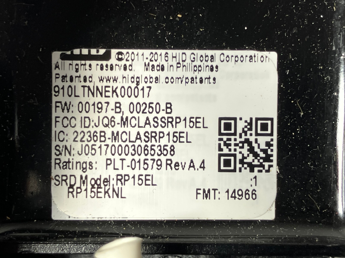 - Lot of 2 HID 910LTNNEK00017 Multiclass SE RP15 RP15EL RP15EKNL Smart Card Reader