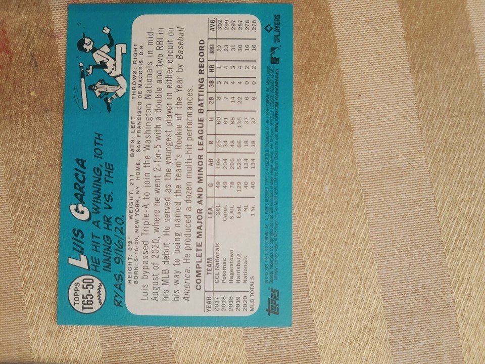 Lot Of 2 Luis Garcia Topps Heritage 2021 Game Used Jersey Card #T65-50cc-Lg- ...