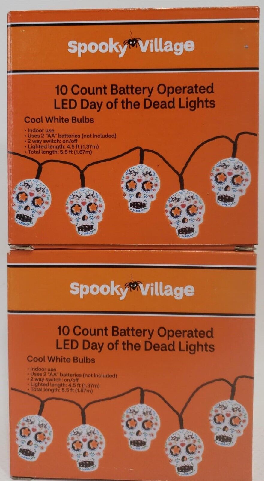 - Lot Of 2 Spooky Village 10 Count Battery Operated LED Day Of The Dead Lights