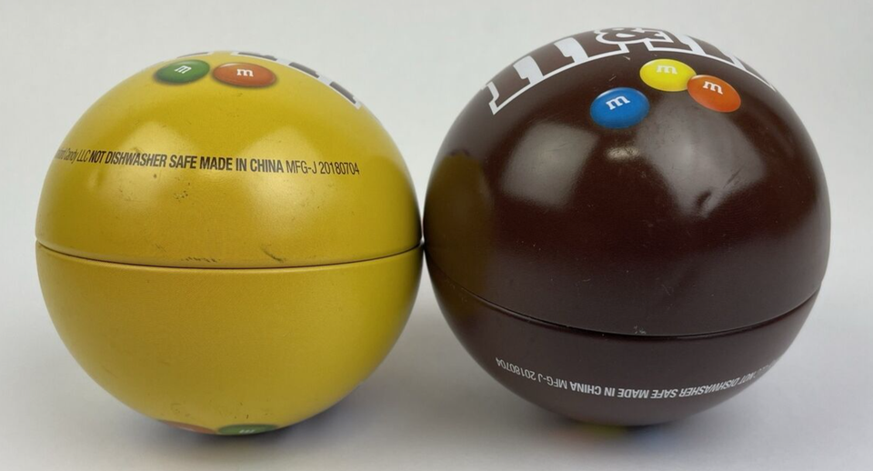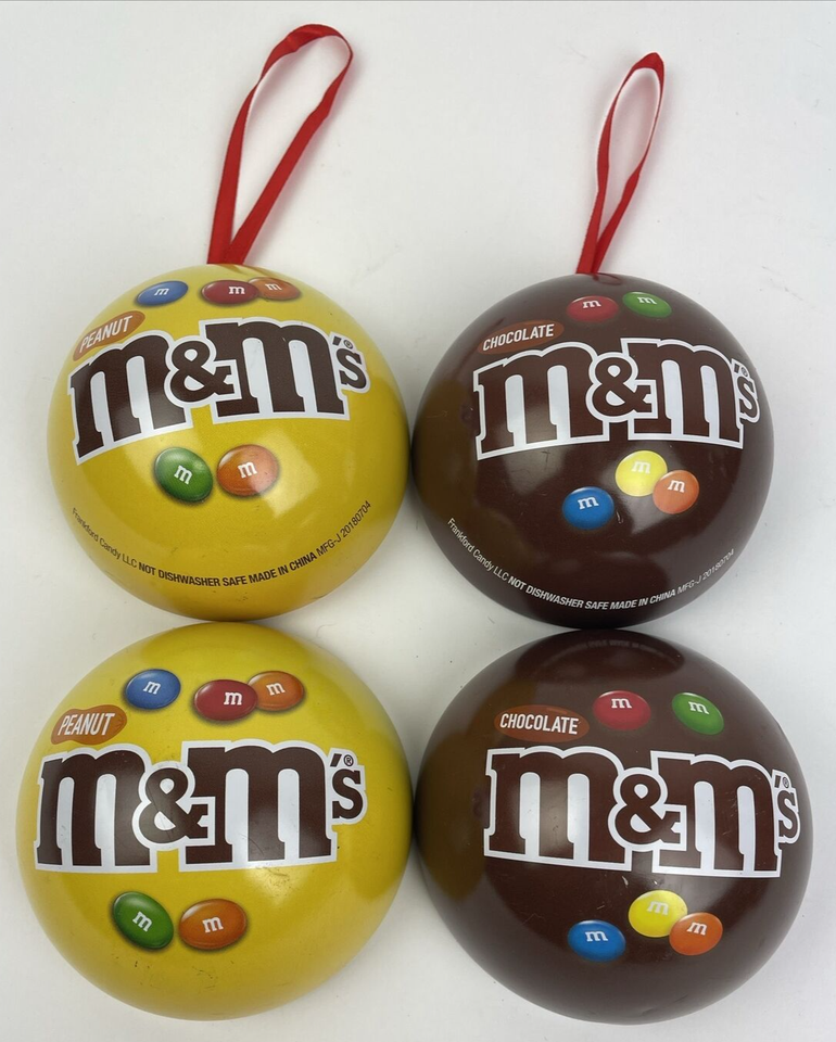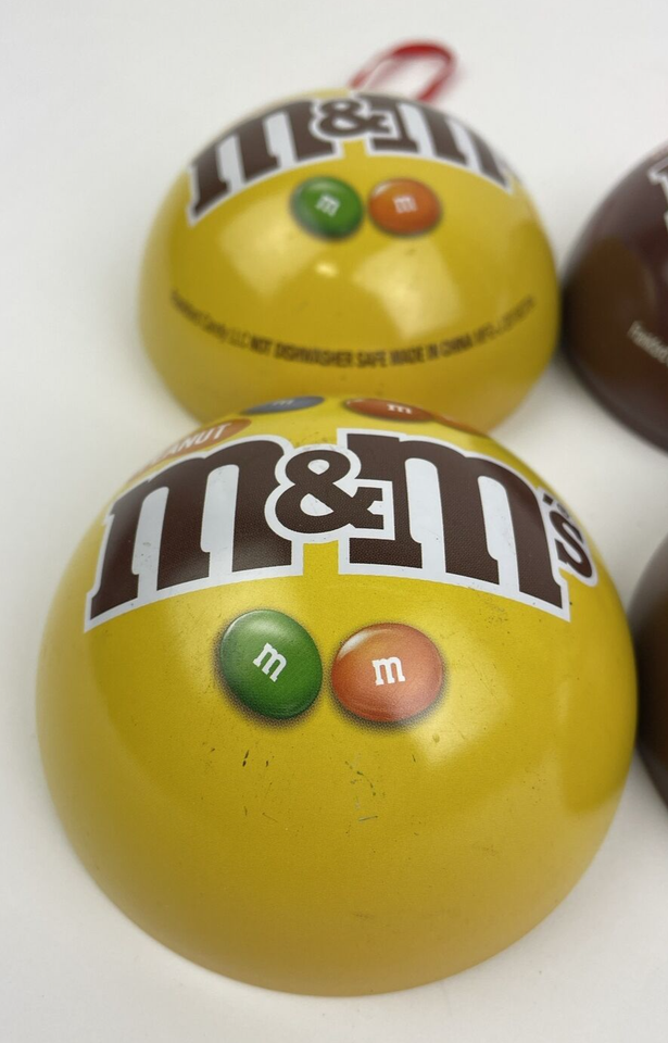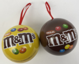 - Lot of 2 x M&M Chocolate & Peanut METAL BALL CHRISTMAS ORNAMENT Empty -Rare Find