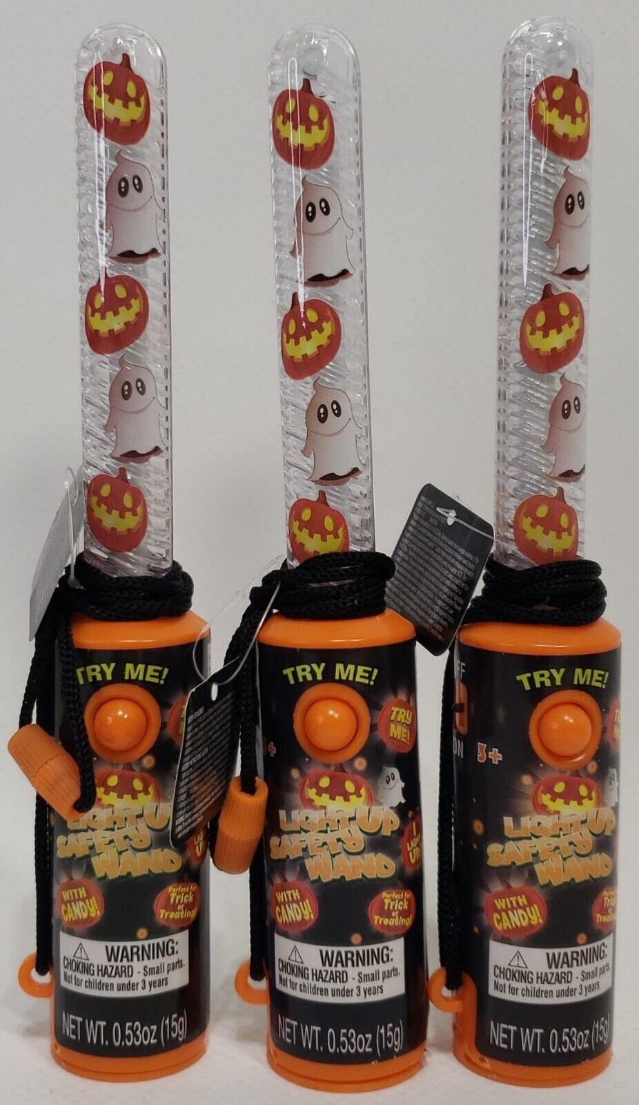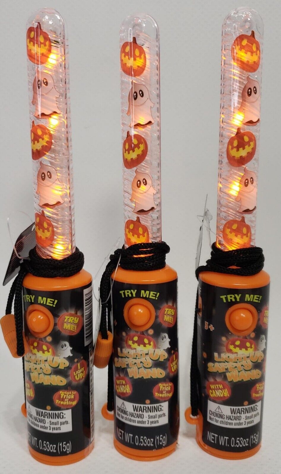 - Lot Of 3 CandyRific Ghost &Pumpkin Light Up Blinking Safety Wand Candy Halloween