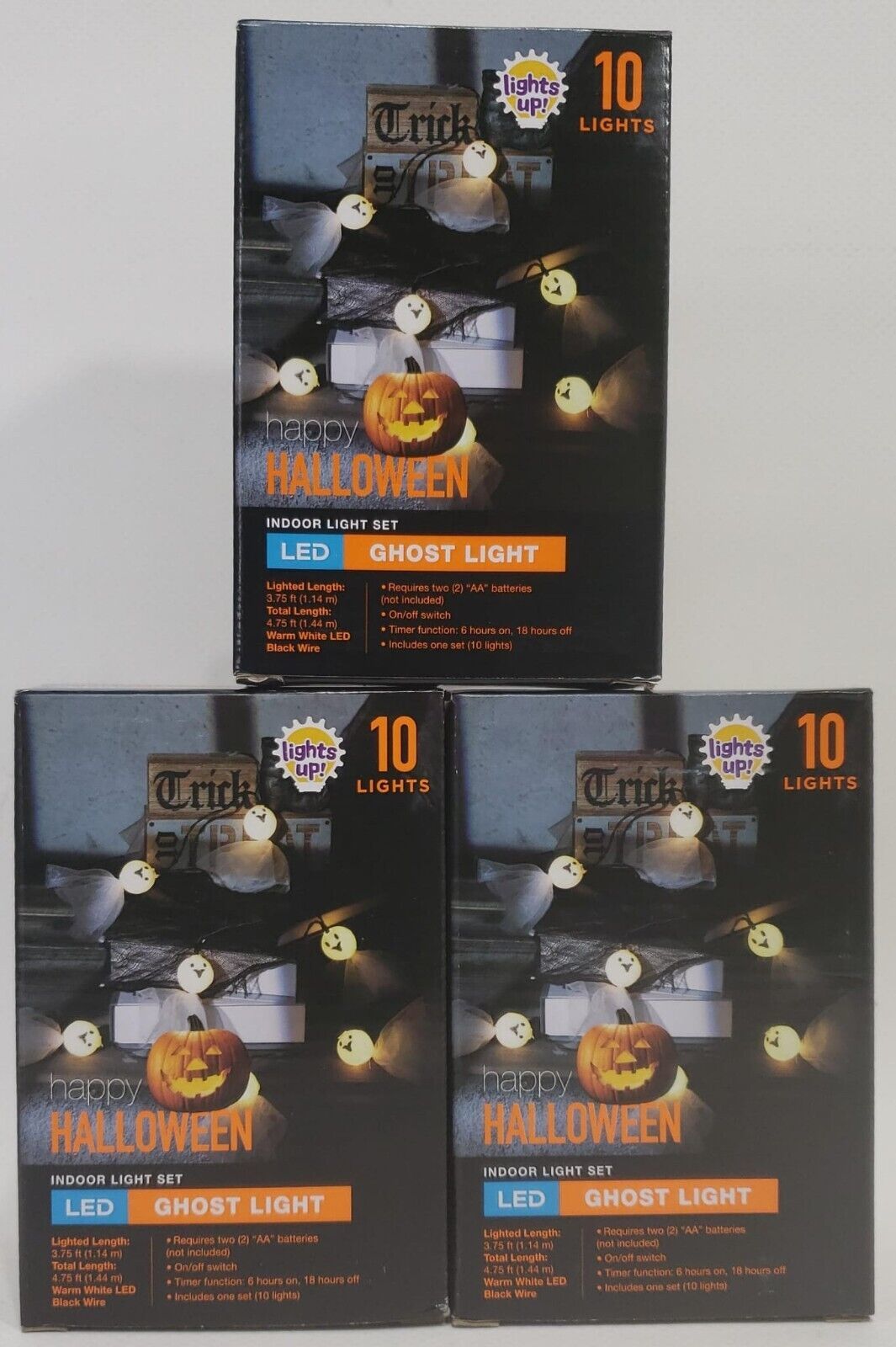 - Lot Of 3 Happy Halloween Led Indoor Ghost Light Set, 10 Lights