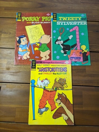 - Lot Of (3) Vintage Gold Key Comics Porky Pig Sylvester Aristocats