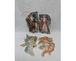 - Lot Of (4) Vintage Christmas Foil Diecut Santa Clause And Angel Ornaments 5"