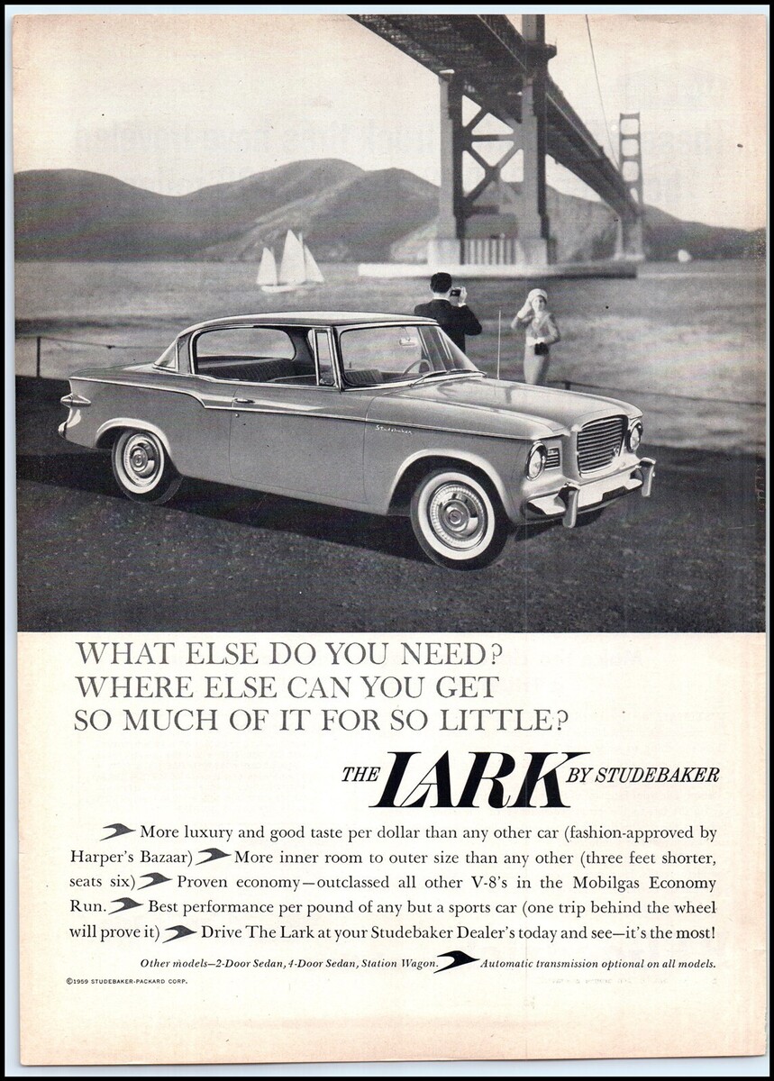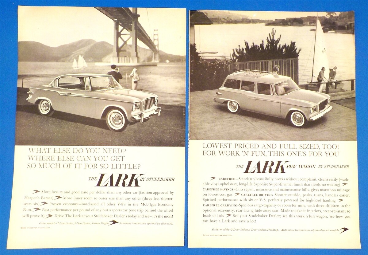 2) Lot of 2- 1959 Studebaker "The Lark" Automobile PRINT ADs Sedan Play Wagon BX4) Size (Approximate) - 8" x 11"