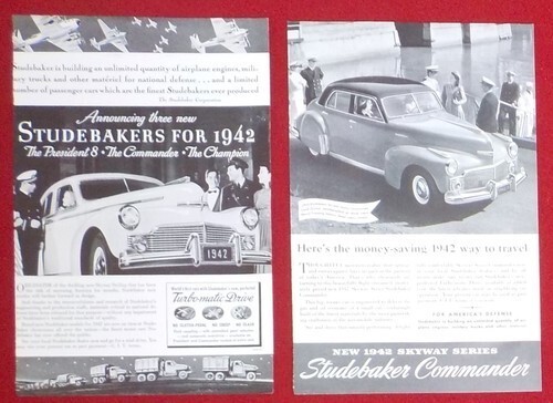 1) Lot of 2 Different 1942 STUDEBAKER Magazine Car / Automobile Print Ads A1 Page size (Approx) 6 3/4" x 10"