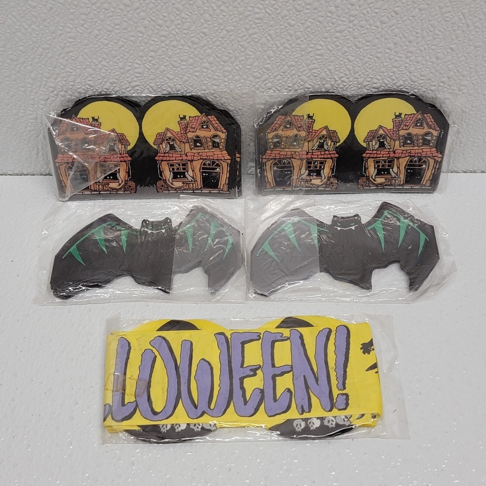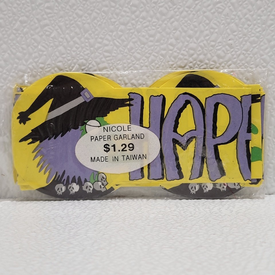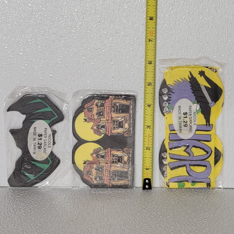 Lot Of 5 Vintage Halloween Nicole Paper Garland Witches Bats Haunted House. Not sure how long they are, no measurements listed. See images for actual lot that will ship.