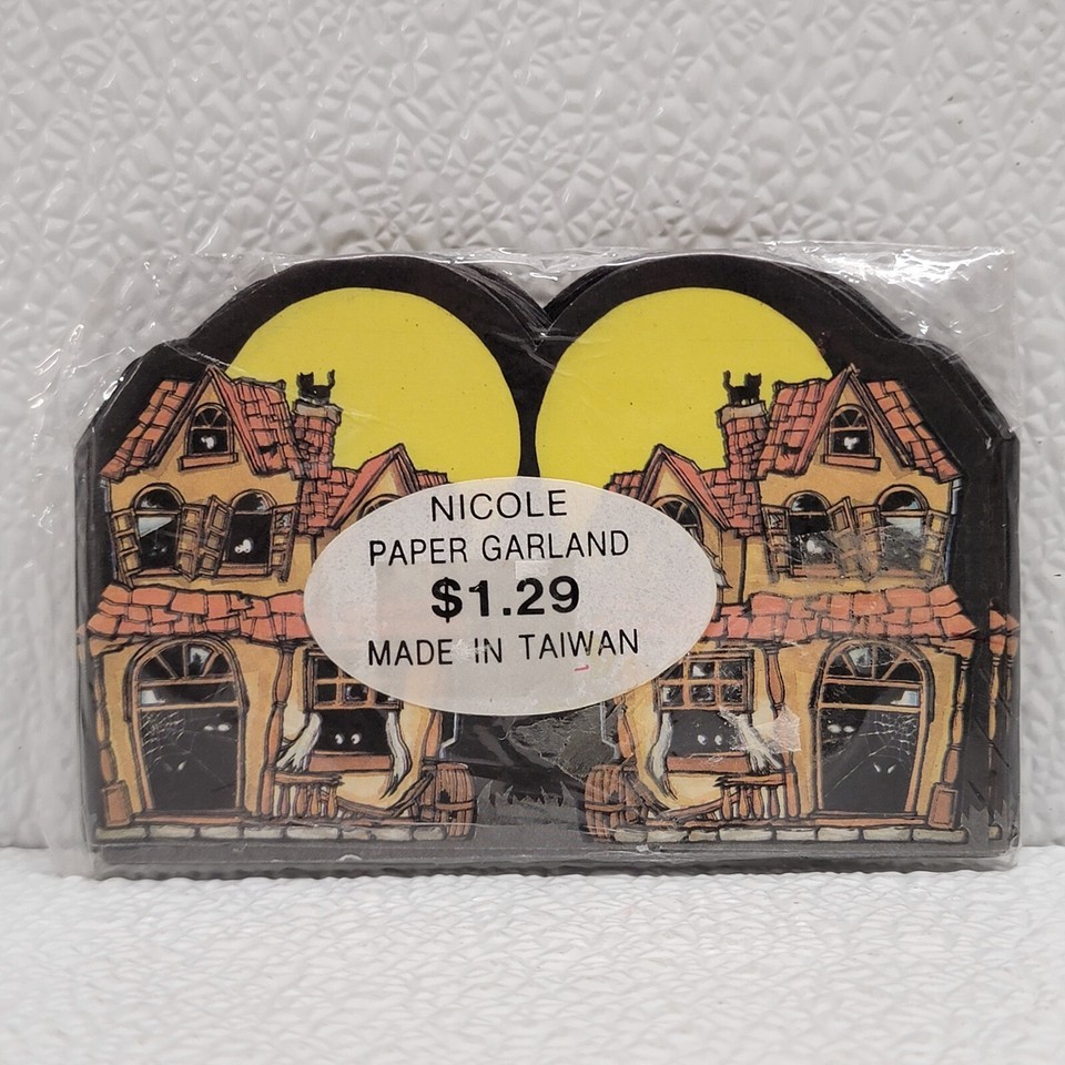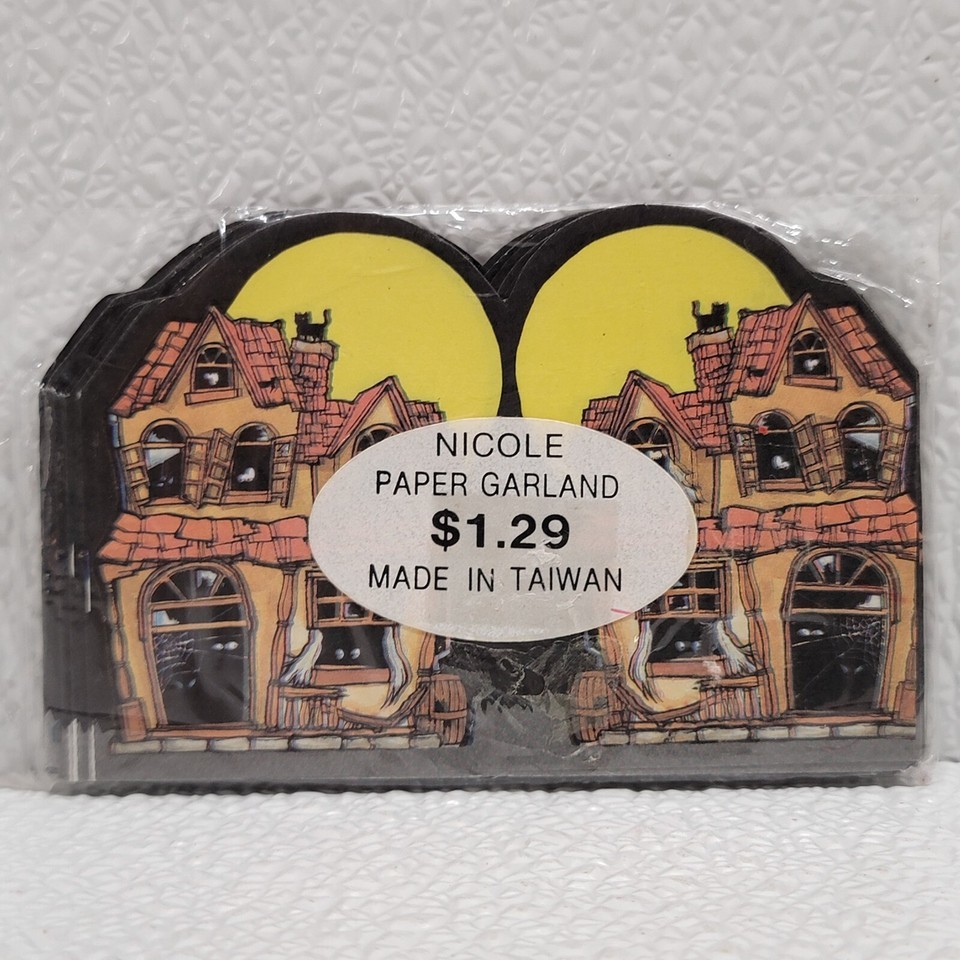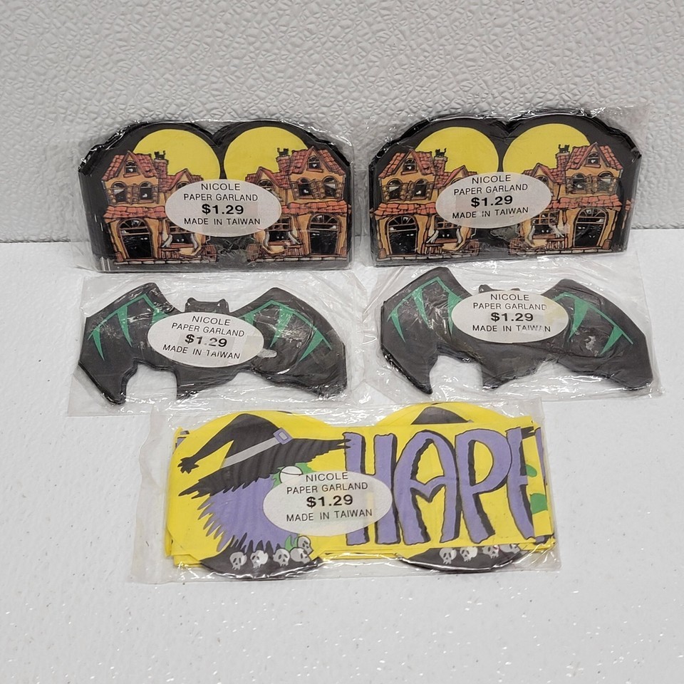 - Lot Of 5 Vintage Halloween Nicole Paper Garland Witches Bats Haunted House