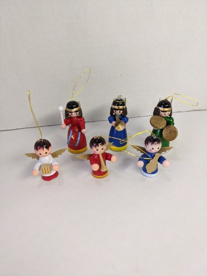 - Lot Of (6) Vintage Christmas Angel With Instruments Hanging Ornaments 1-2"