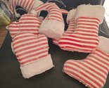 Lot Of 9 Christmas Ornaments Stocking Hat Mitten Red White Stripe Fuzzy Glitter