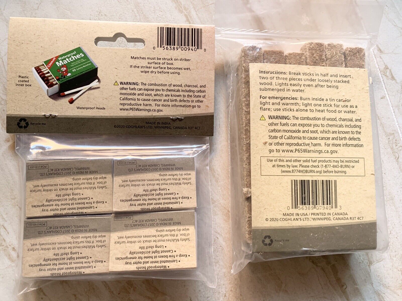 Camping Coghlans Waterproof Matches 4 pk.. and fire sticks 12pcs Condition is "New". Shipped with USPS First Class.