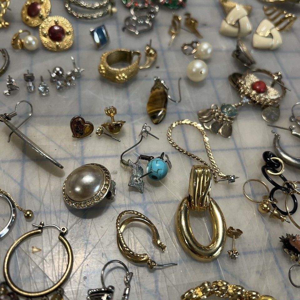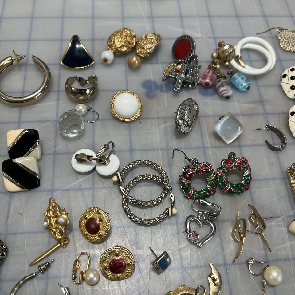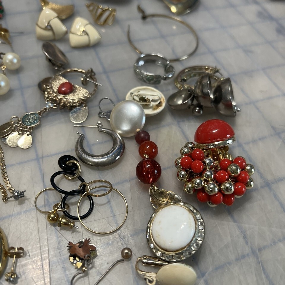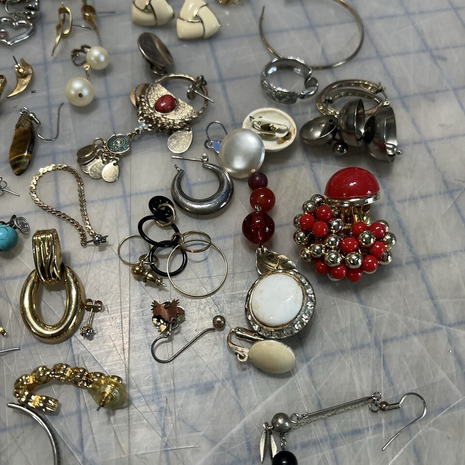 - Lot Of Earrings Clip On Post Vintage Modern Costume Singles Pairs Crafting