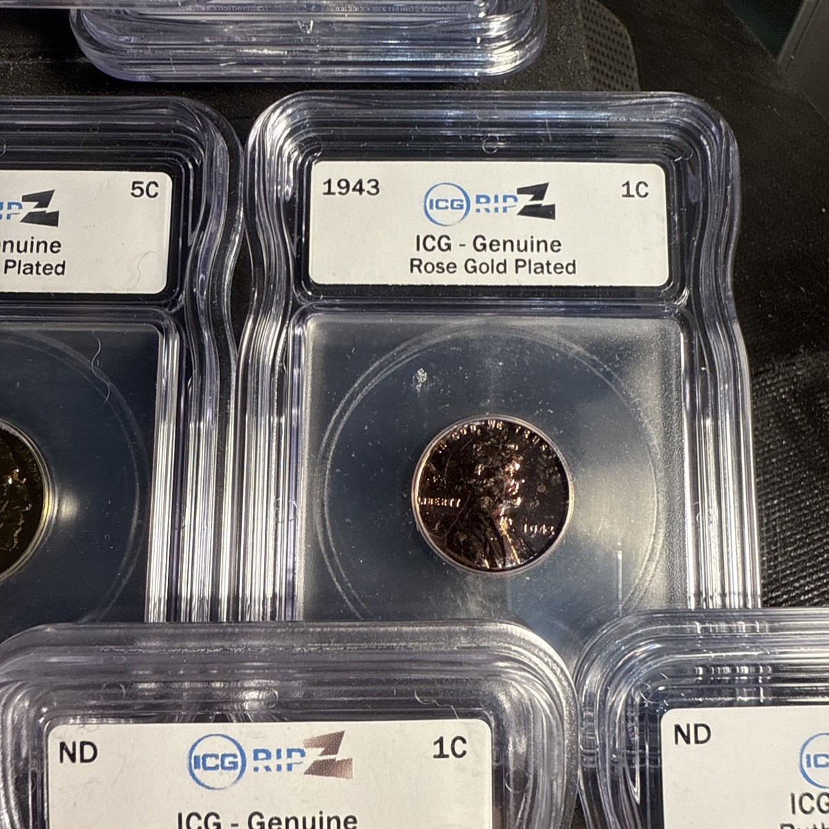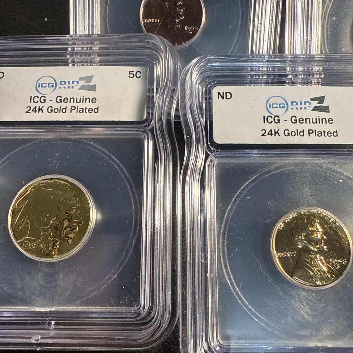 - Lot Of FIFTEEN Gold And Ruthenium Plated, Genuine American Coins - ICG Genuine!