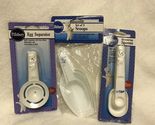 You will receive the 3 items shown: VERY RARE HARD TO FIND HARD PLASTIC EGG SEPARATOR (1992) SET OF 3 Scoops, (1998) SET OF 3 hard plastic NESTING snap together measuring spoons. (1994)