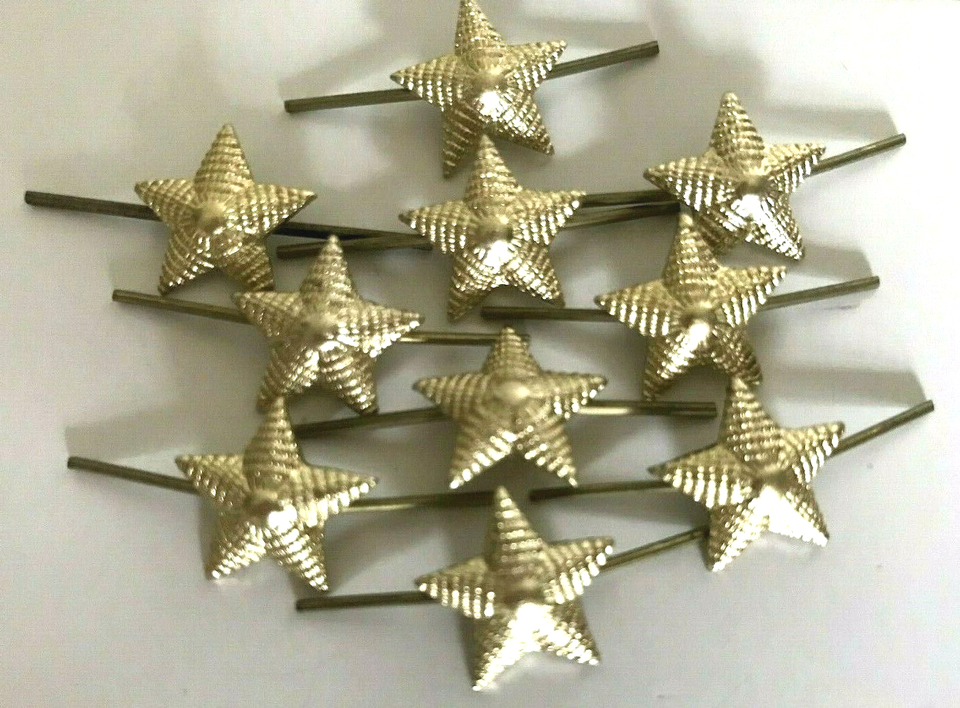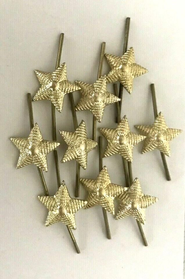 - Lot of 10 USSR Army Lieutenant Epaulet Metal Rank Star pin. Gold Ribbed 13 mm