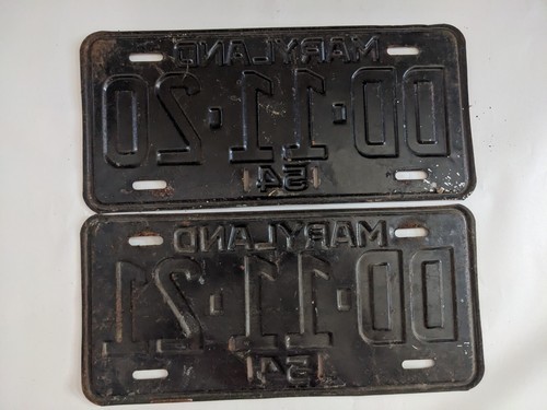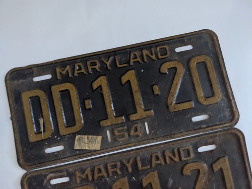 - Lot of 2 1954 Maryland MD Driver License Plate DD1120 DD1121 Sequential