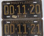 Lot of 2 1954 Maryland MD Driver License Plate DD1120 DD1121 Sequential