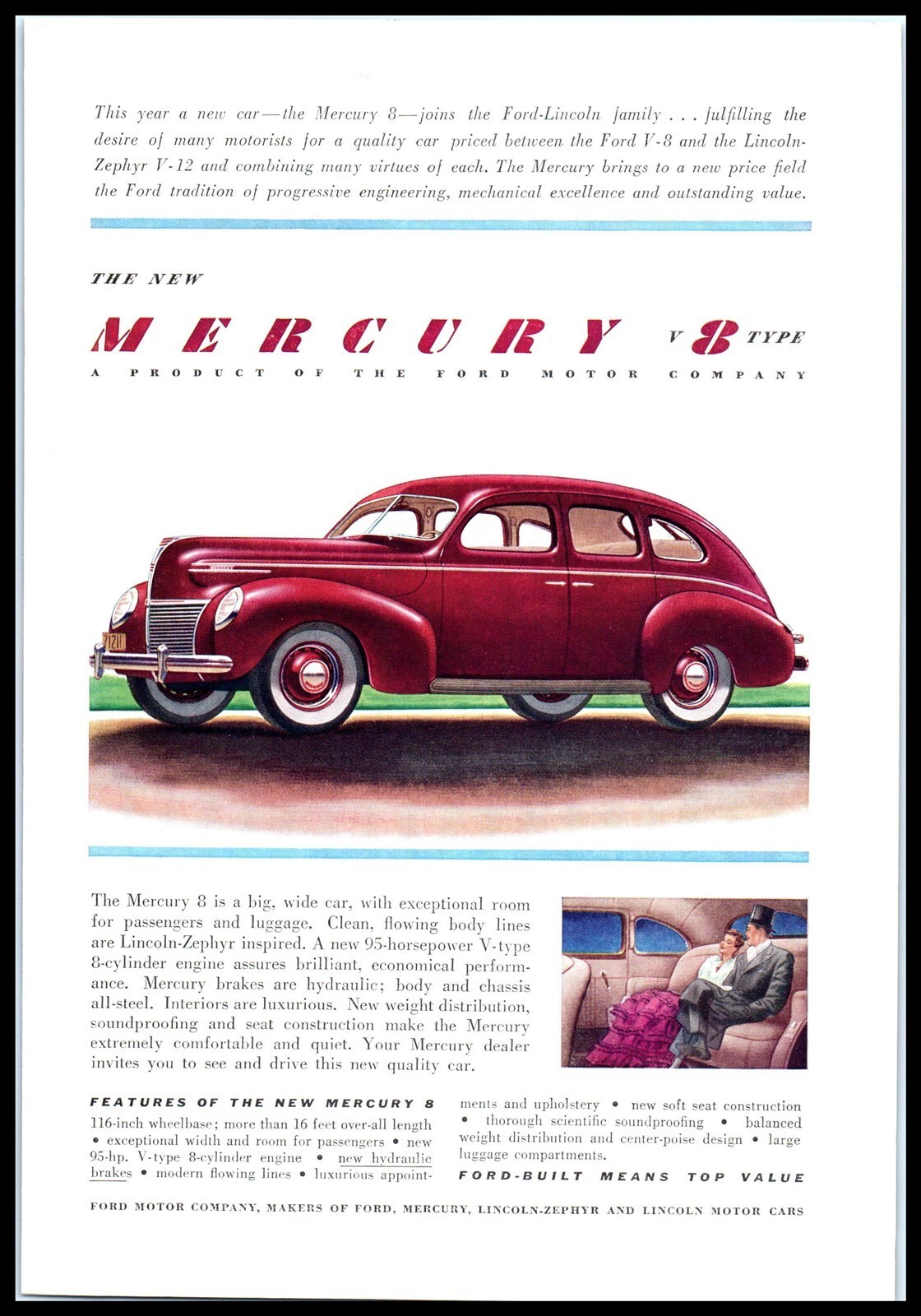 - Lot of 2 Color Magazine Car / Automobile Print Ads 1939 MERCURY, 1941 LINCOLN A1
