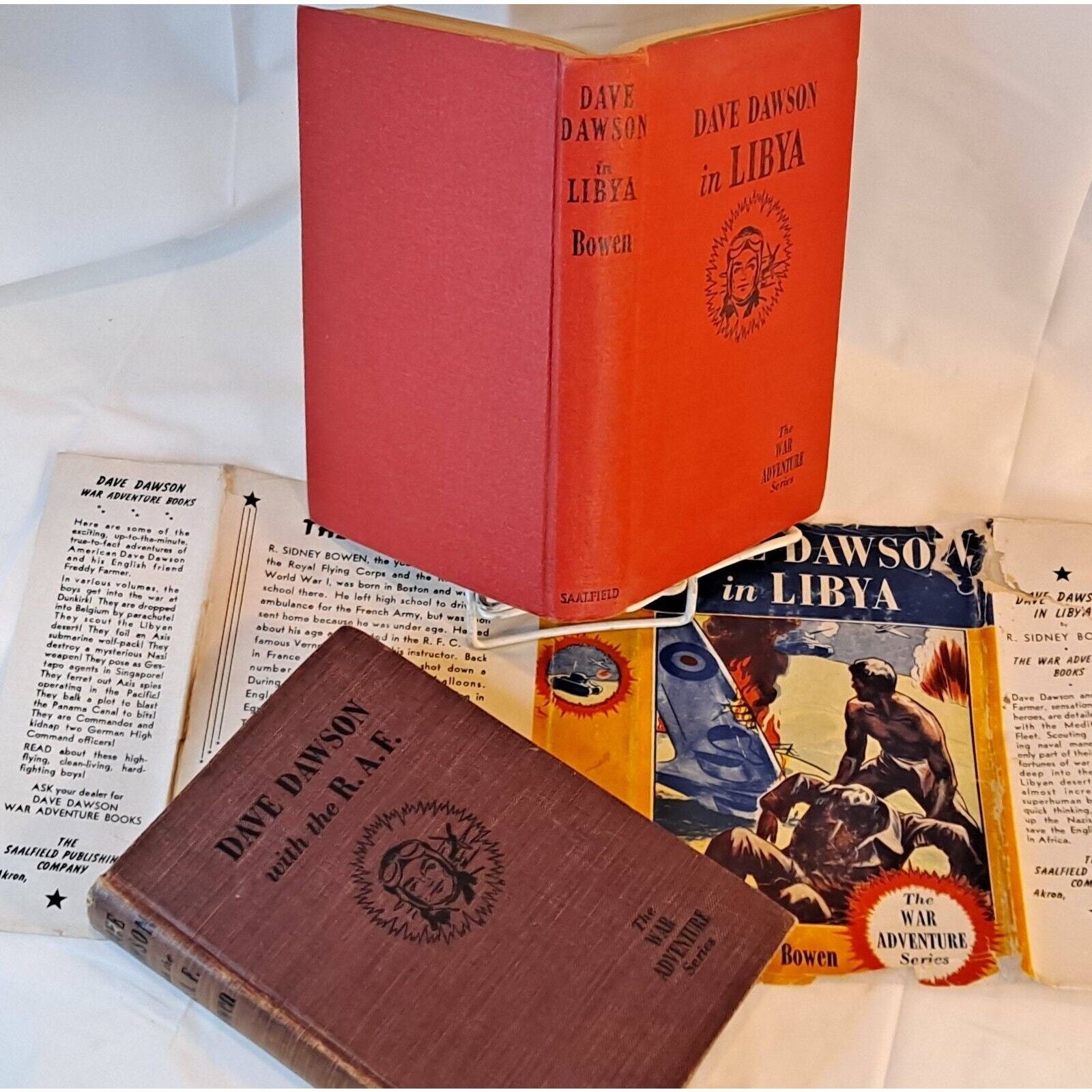 The Dave Dawson aviation stories were classics of the WWII era. American Dave Dawson, with his English pal Freddy Farmer, roamed the skies throughout the world defeating the evil forces of Germany, Italy, and Japan. The titles in this lot were published in 1941, Vol.2 ...with the R.A.F. and Vol. 3 ...in Lybia.