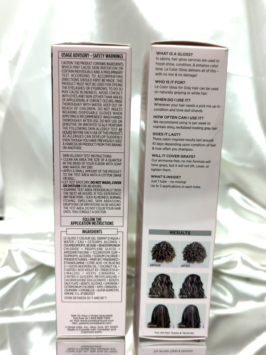 - Lot of 2 L’Oreal Paris Le Color Gloss 1-Step Toning Hair Gloss Silver Slate