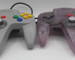 - Lot of 2 Nintendo N64 OEM Controllers Gray & Purple Tested tight sticks on both!