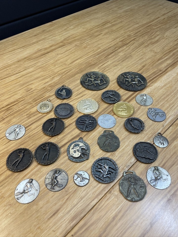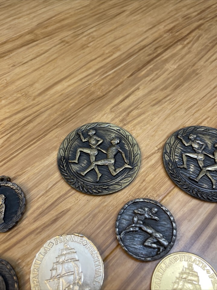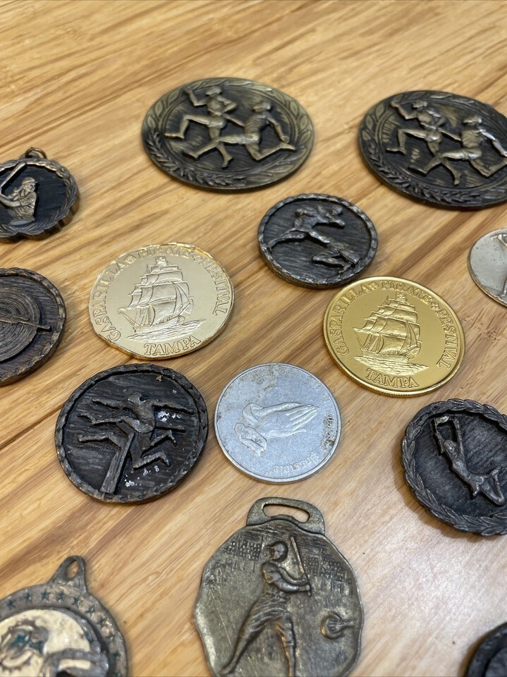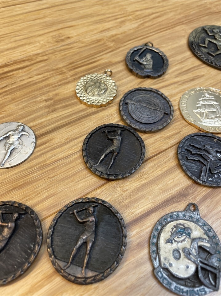 - Lot of 25+ Sports Pirate Medallions Swimming Baseball Track Cheer Dolphins KG JD