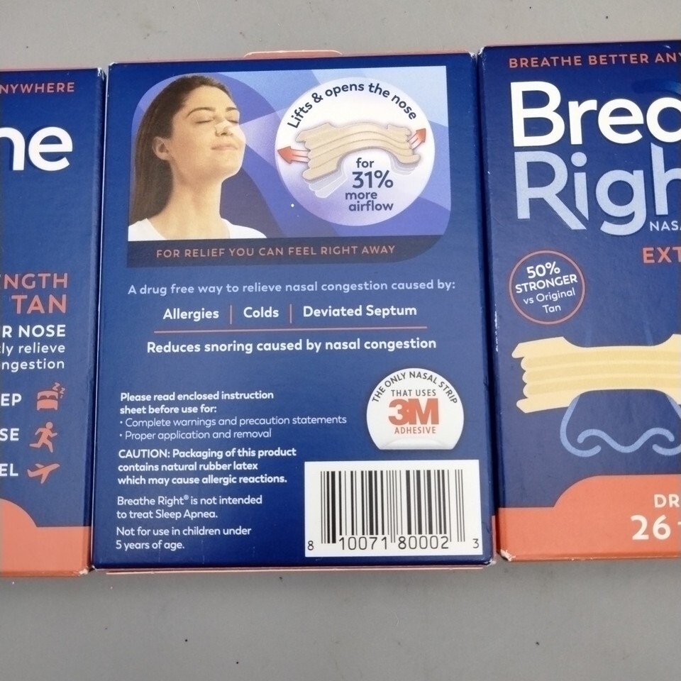 - Lot of (3) Breathe Right Extra Strength Nasal Strips Tan (3 x 26ct)