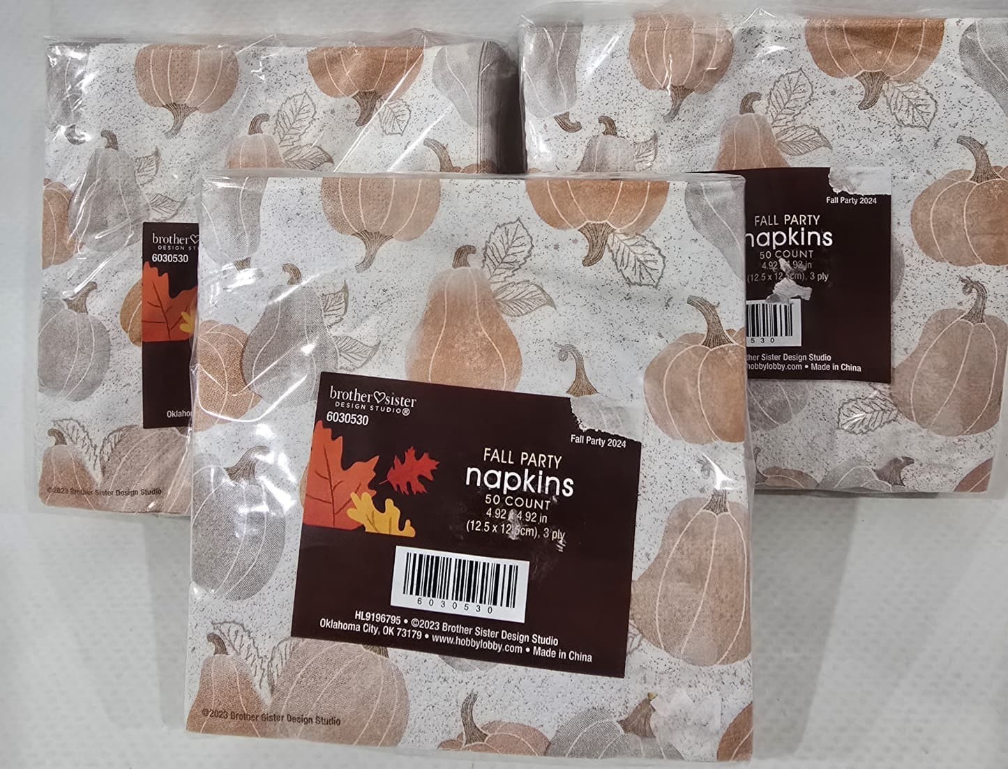 - Lot of 3 Fall/Thanksgiving Holiday Party Napkins Pumpkin Design, 150 Count Total