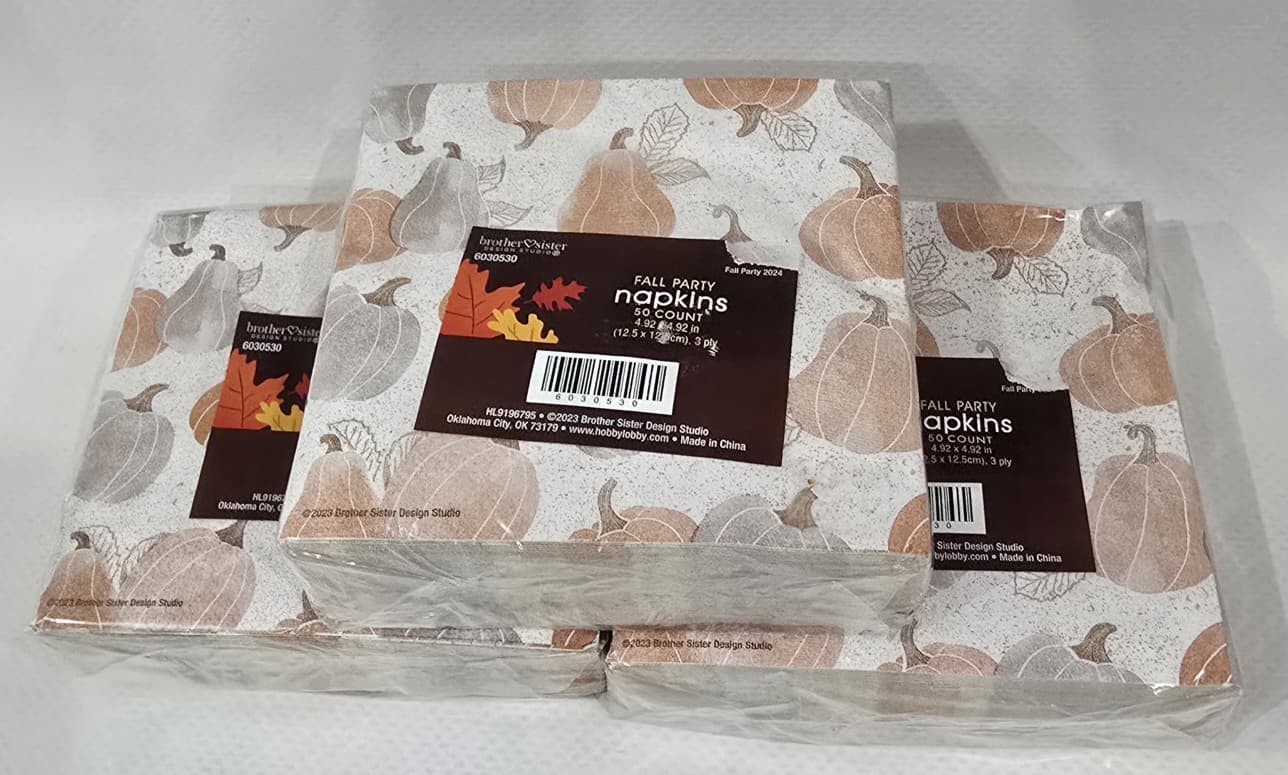 Quantity: This lot includes three (3) brand new, sealed packs of napkins. Each pack contains 50 napkins, for a total of 150 napkins.