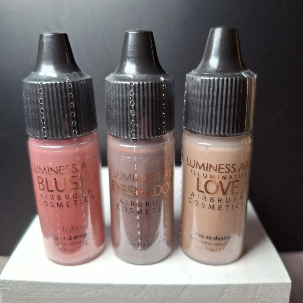 Lot of 3 Luminess Air Airbrush Cosmetics Blush TULIP - Eyeshadow 41 BROWN - Illuminator LOVE .25ml each SEALED.