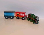 - Lot of 3 Melissa and Doug Wooden Magnetic Green Train Engine, Red And Blue Cars