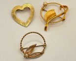 - Lot of 3 Vintage Brushed Goldtone Brooch Pins MCM heart pearl