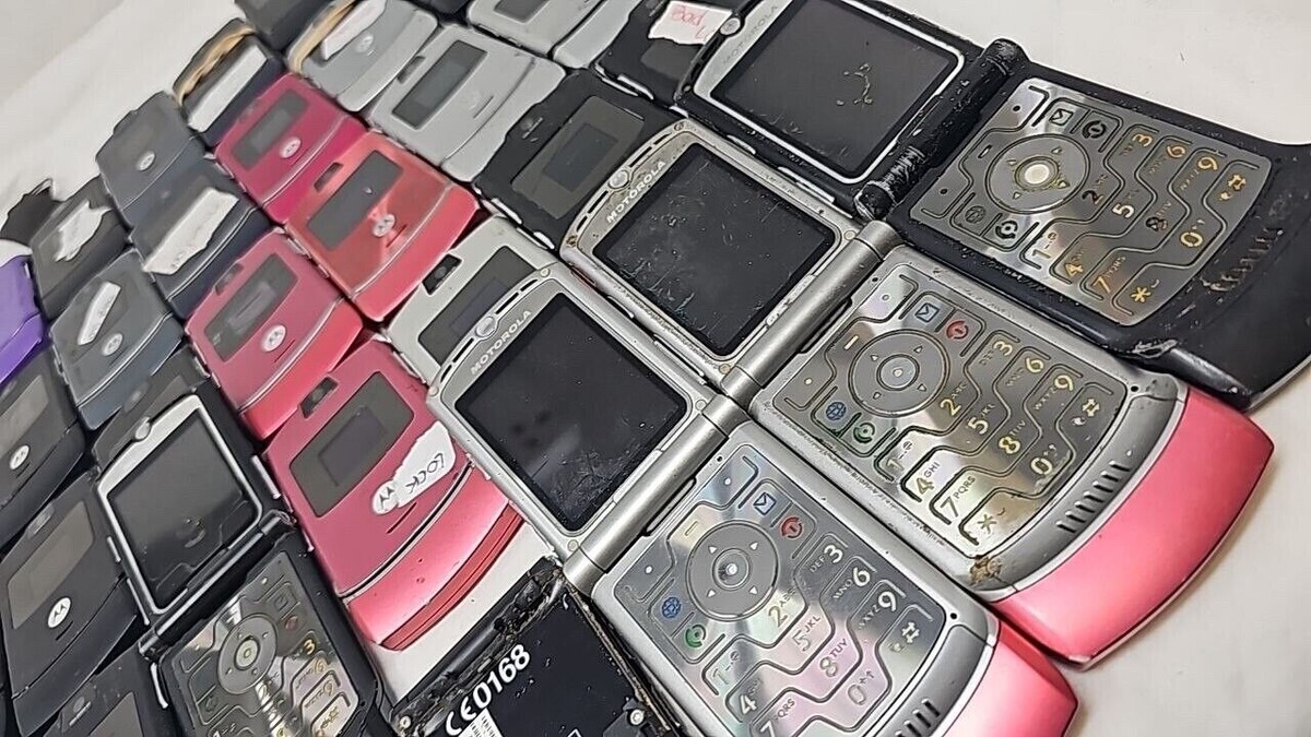 Item includes: Please note: This item includes 34x Motorola Razr V3 Smartphones in mixed colors ? AT T and T-Mobile ? As Pictured. Devices Only. Also includes 15x batteries and 20x assorted battery doors. No chargers, cables, or other accessories are included.