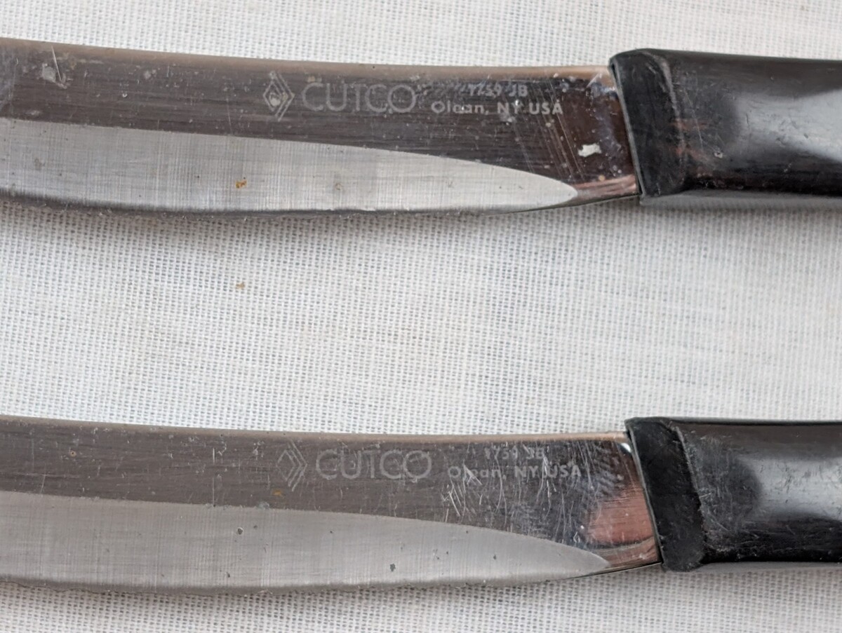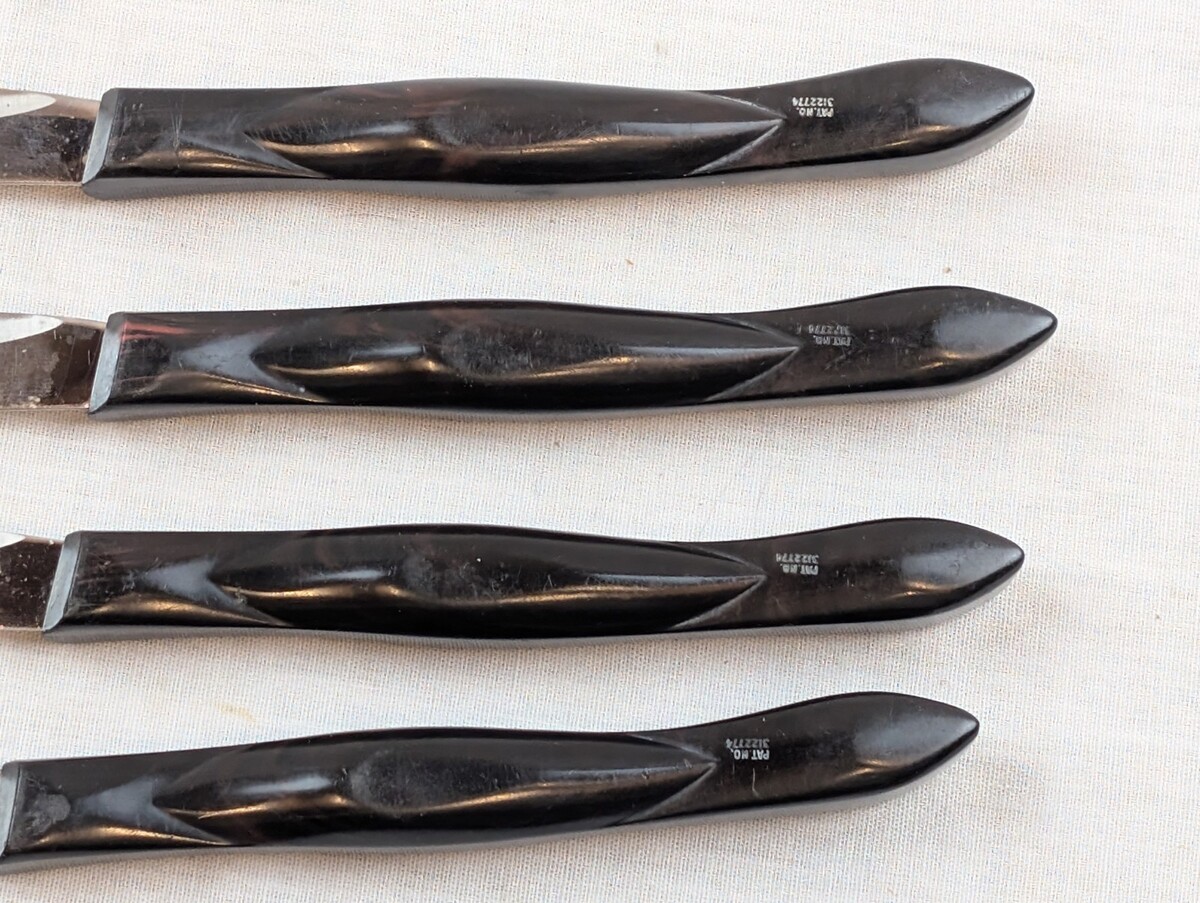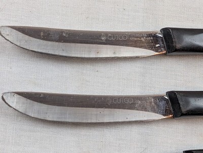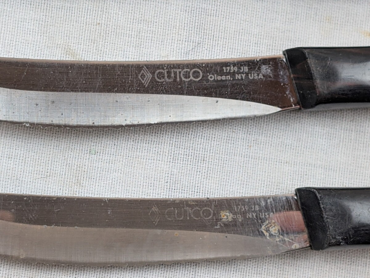 - Lot of 4 Cutco Serrated Steak Knives 1759 JB Black w. Red Swirl Handle 8.5" long
