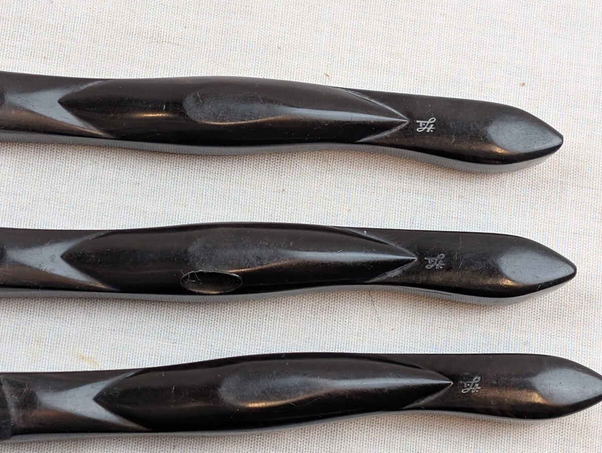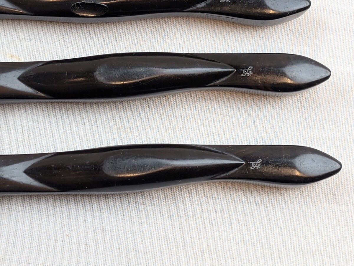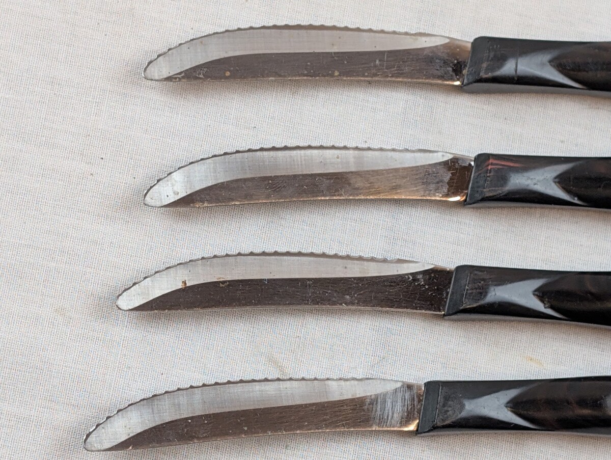 Up for sale is a Lot of 4 Cutco Serrated Steak Knives #1759 JB. They have Black with a hint of Red Swirl Handles