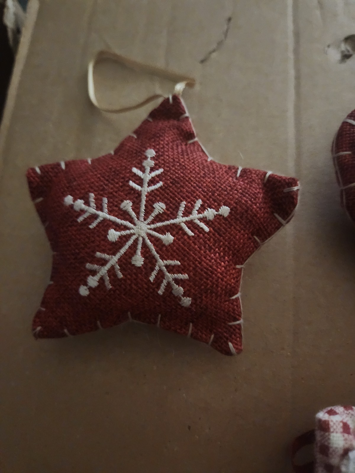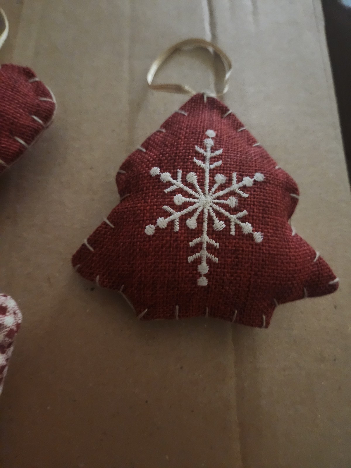 - Lot of 4 Fabric Stitched Stuffed Christmas Ornaments Tree Snowflake Star