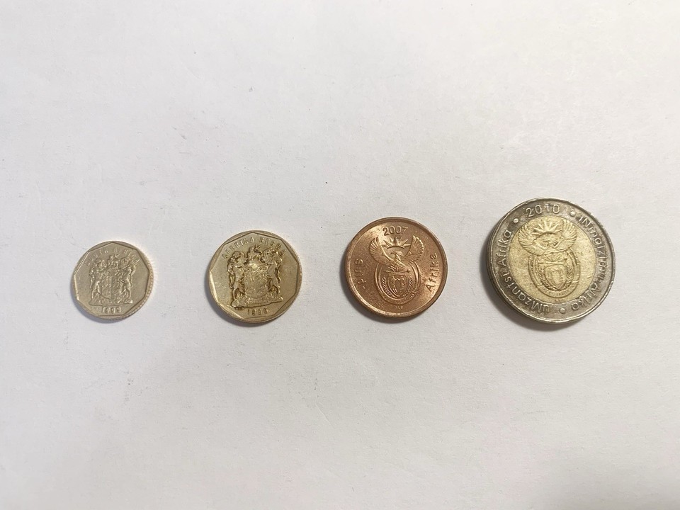- Lot of 4 South Africa Coins 5c 10c 20c 1 Rand 1990s–2010 Mixed Dates Rare