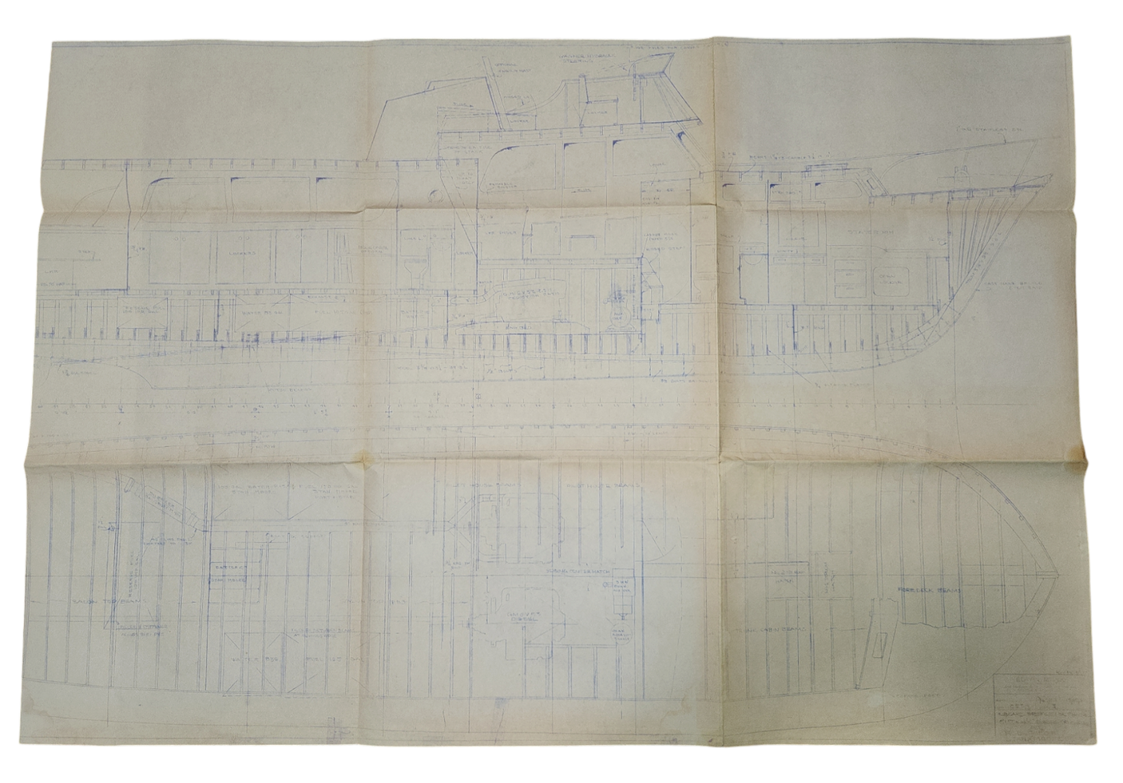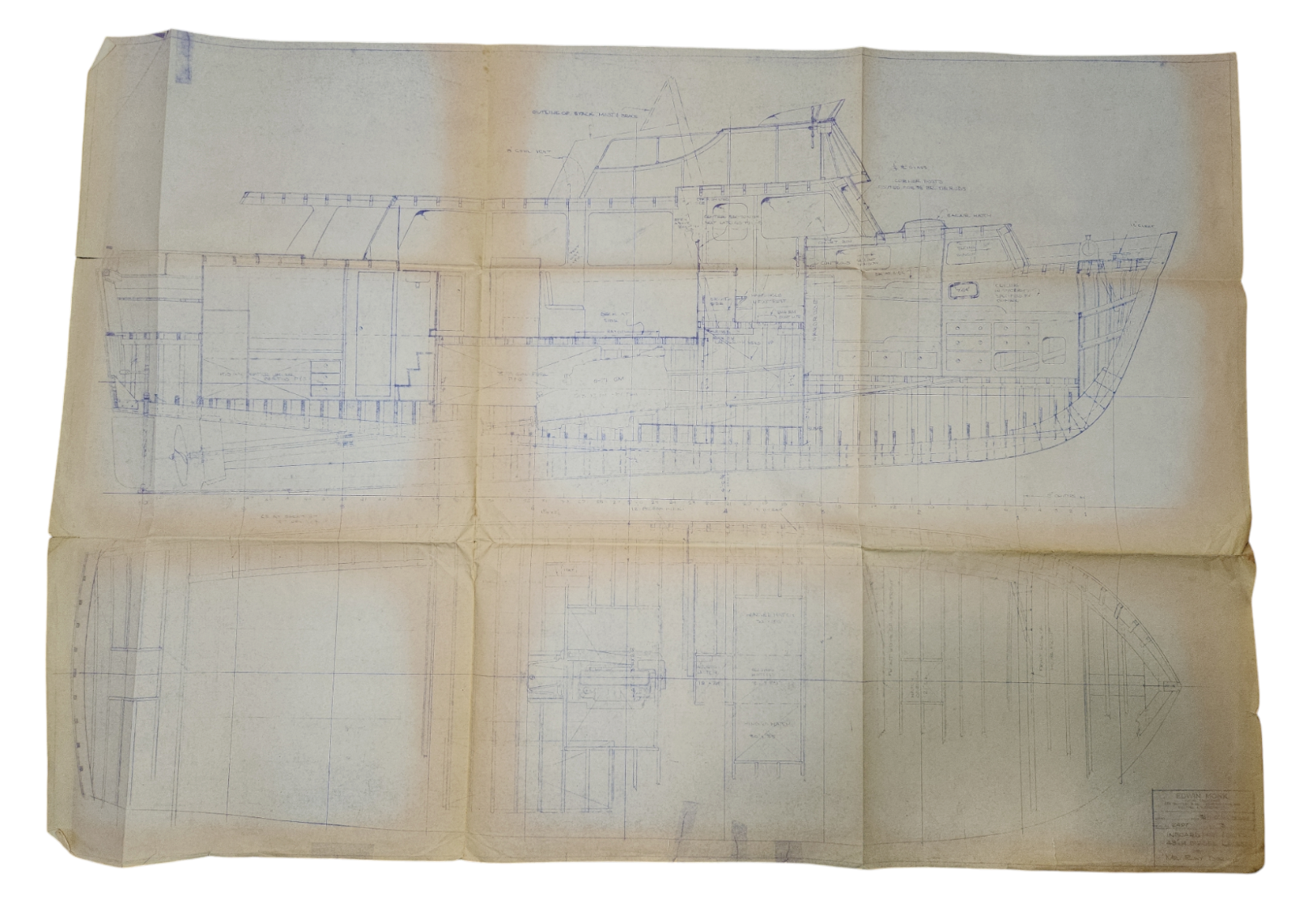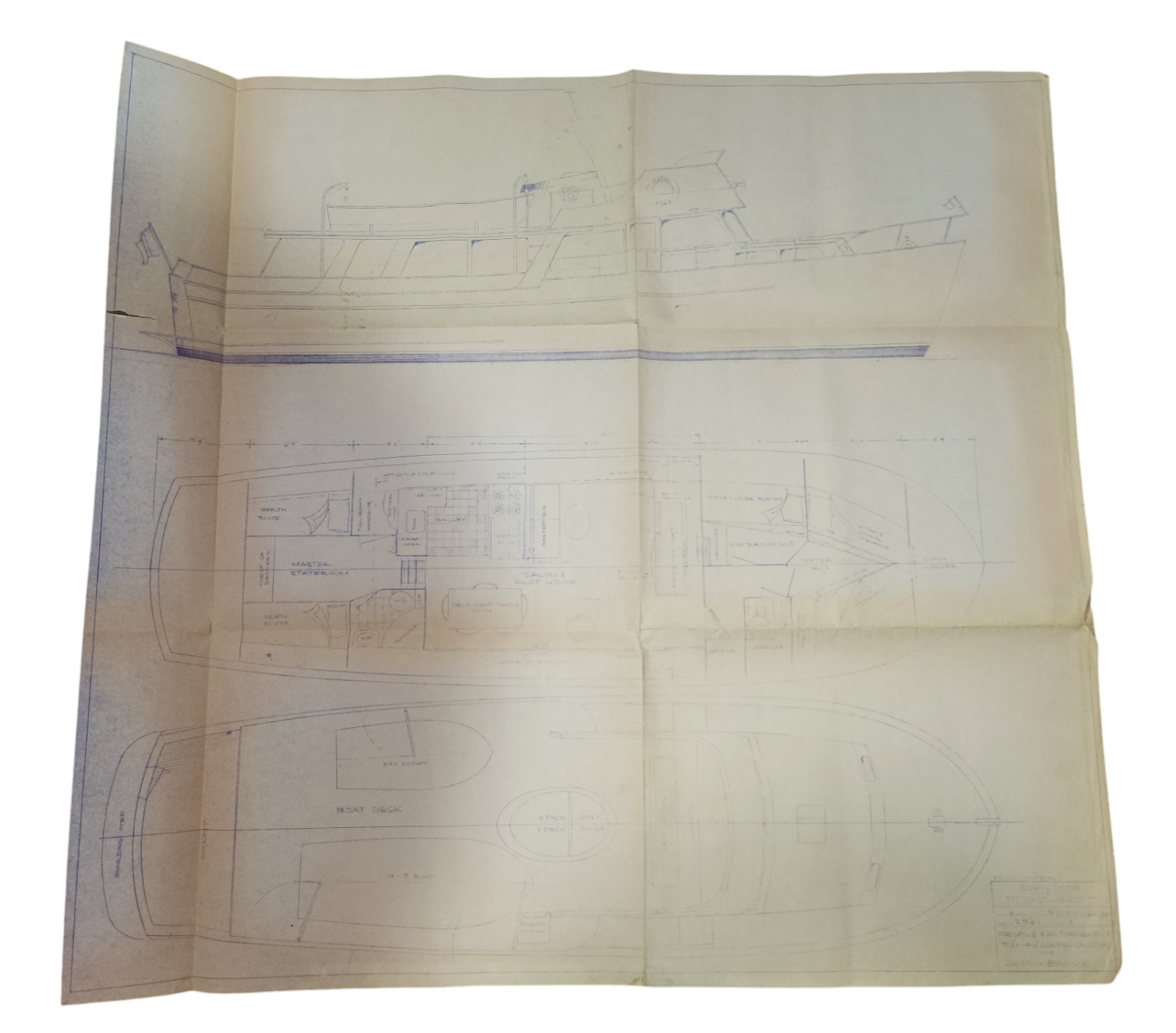 Design #2591 50ft Diesel Cruiser dated 1965 for Dr. Hew Brooke 30x28"