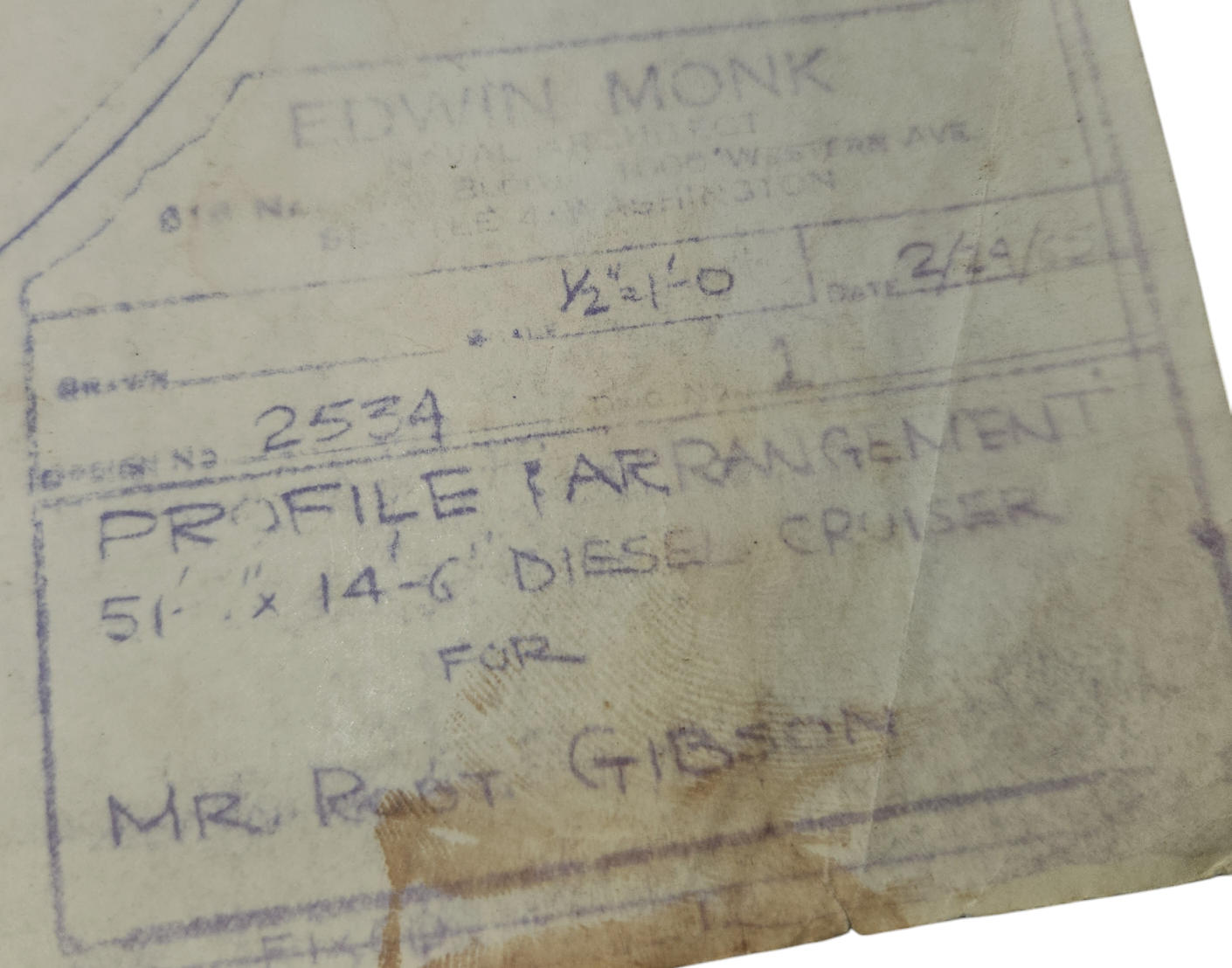 Design #2534 51ft Diesel Cruiser dated 1965 for Mr. Robert Gibson 30x26"