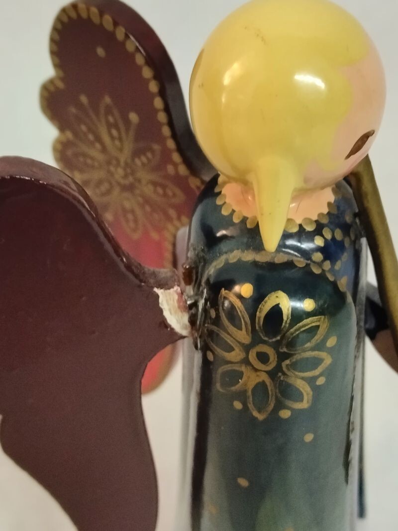 Angels are exactly as pictured with some damage with paint chips and loose wings. Please use the zoom and enlarge features to determine and confirm the condition as we have provided several photographs of multiple angles to illustrate any flaws. Overall they are clean and free of any dirt, extraneous stickers or residue. The included pictures in the listing are of the actual item.